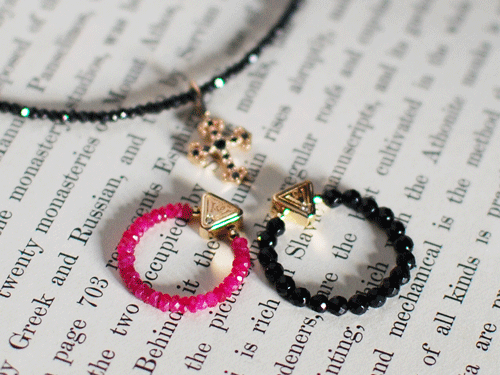 ルビーとオニキス、そしてK10イエローゴールド、ブラウンダイヤモンドを使った