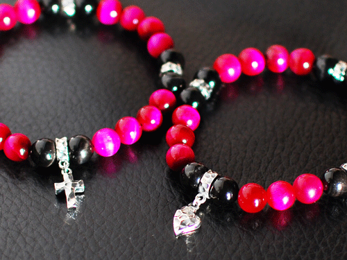 どちらも、数珠型のゴムブレスレットですが、つけやすく、他にはない