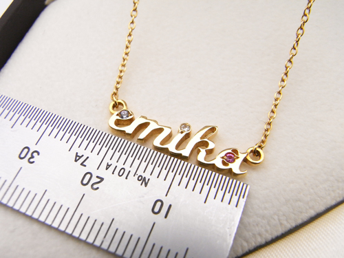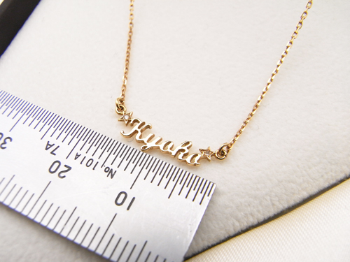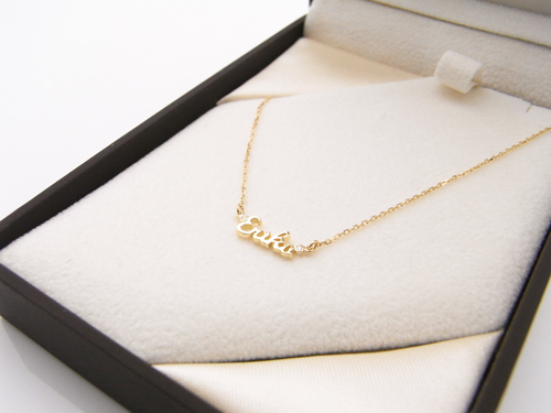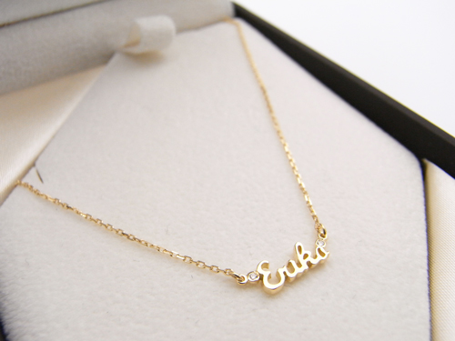 このネームネックレスは、自分の名前や子供の名前、愛する人の名前をネックレス