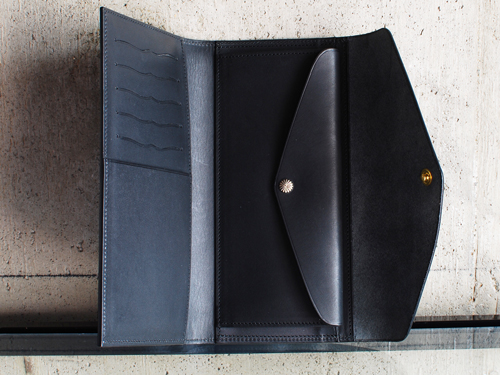 これまでのラウンドジップとは違い、二つ折りの長財布で、カード