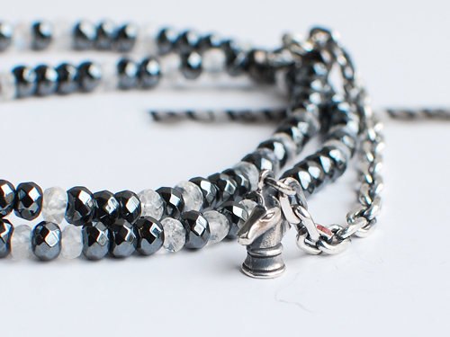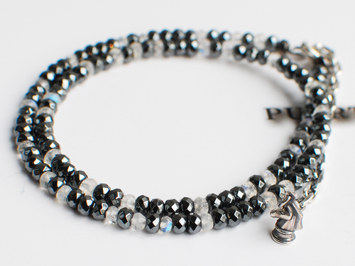 ヘマタイトとムーンストーンを組み合わせたモノトーンの二重巻きブレス。