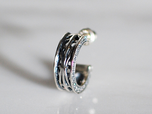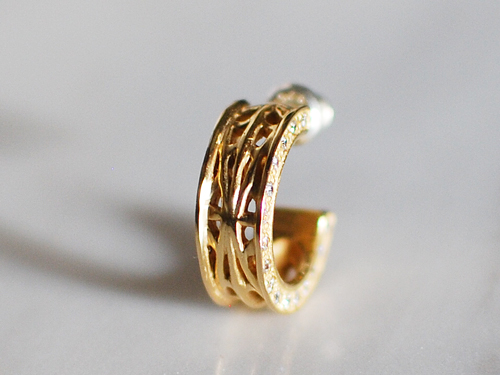 シャークピアス・・・サメの革(ガルーシャ)をイメージして石をセッティングしている秀逸なデザイン!