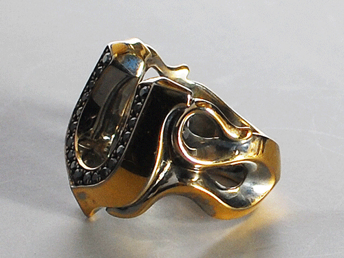 通常、ブラックの石にブラックコーティングが多いのですが、あえてクリアーの石で表現しています。