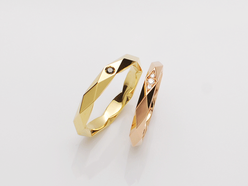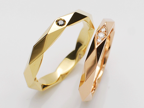 K18イエローゴールドにブラックダイヤモンドを1石、K18ピンクゴールドにダイヤモンドを3石セッティングしました。