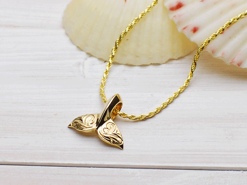 見ると幸せが訪れるという、クジラの尻尾のペンダント。