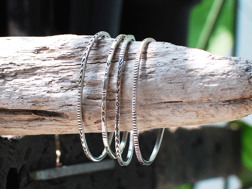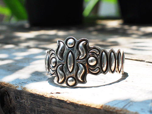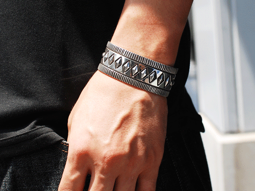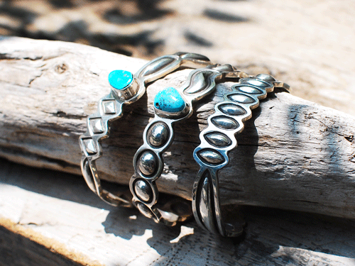 ALEX SANCHEZ・・伝統的技法を駆使し、モダンなインディアンジュエリーへと昇華した”アシンメトリー”なバングル(from left….45000, 45000, 40000)