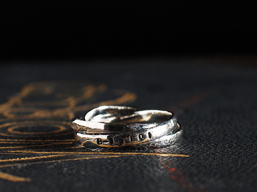 今回のアンプ・ジャパンの新作は、言葉に焦点をあてシルバーに魔法の言葉を一文字一文字打ち込んだジュエリーたちです!