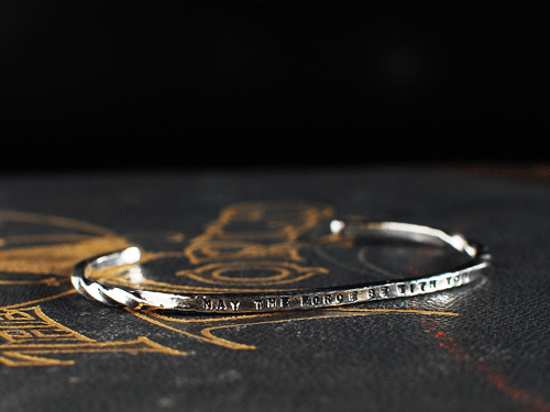 細身ながらも叩き鍛えあげられたバングルの両サイドは、ねじられハンマー痕が残されています。