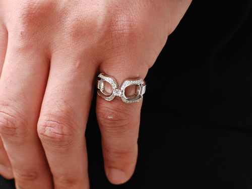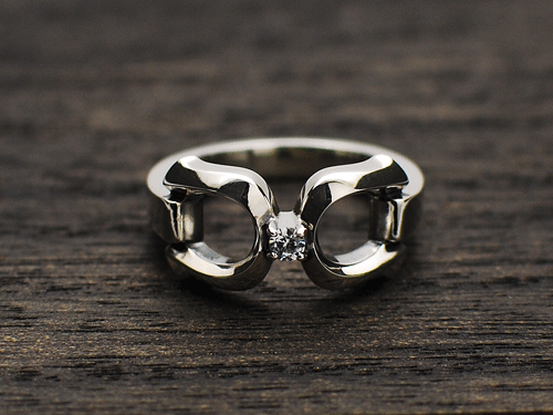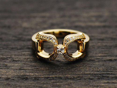 ビットとよばれる馬具の『はみ(馬の口にくわえさせるクツワの一部分)』をかたどった金具をイメージし、シンメトリーなフォルムで表現したホースシューリング。