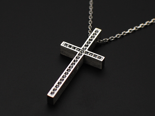 『GARDEL』のクロスネックレスでクリアーの石とブラックの石が施され、リバーシブルでお楽しみ頂けます。