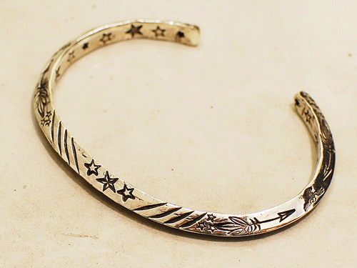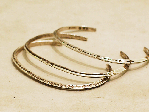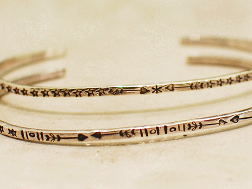 ひとつのアイテムに様々なモチーフのスタンプワークが施された、とても珍しいインディアンジュエリーの数々。