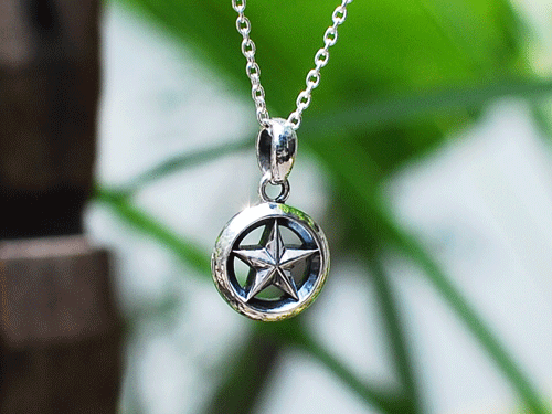 トライアングルワイヤーを使用する事で、エッジが効いたモダンな雰囲気のスターネックレス。(9000)