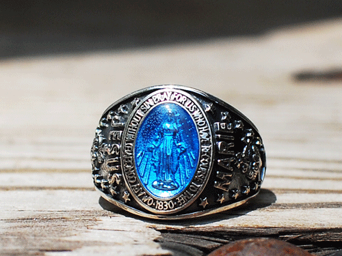 そしてカレッジリングスタイルのマリアリングに、ブルーのエポキシを施したタイプが加わりました。(13000)