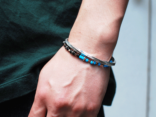 こちらは普遍的なネイティブスタイルのビーズを”カチリ”としたメタルビーズで作り上げ、組み上げる事でスタイリッシュでモダンな雰囲気がプラスされたシャープで都会的なブレスレット!(6000)