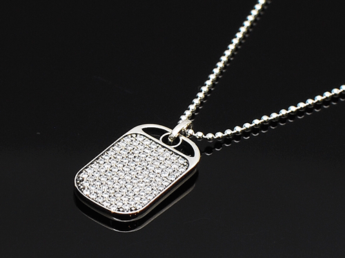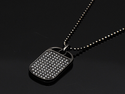 パヴェセッティングされた100ピースのダイヤを合計すると1キャラットになる様に計算されたラグジュアリーなドッグタグ。