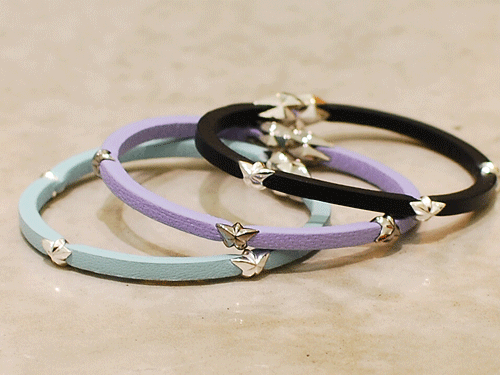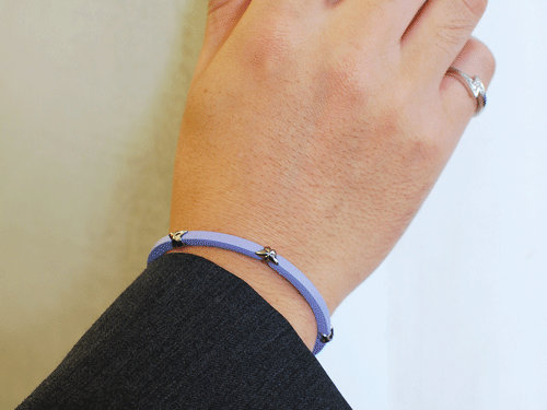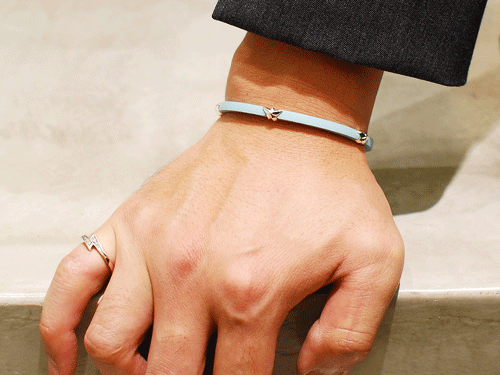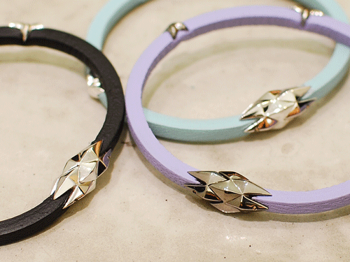 普段は有名アーティストや、セレブにハイエンドなジュエリーを制作している彼ですが、今回は着けやすくカラーで楽しめるシングルタイプのレザーブレスとなっています!