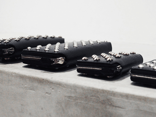 上質で高級感あふれるレザーを使用したこれまでの定番ウォレットに、スタッズを施したパンチの効いたラグジュアリーなアイテムです。