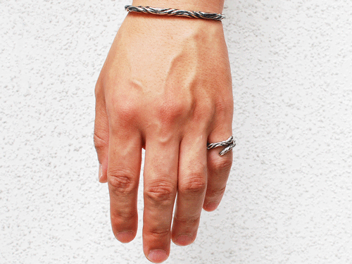 何本ものシルバーが巻きつきねじり合ったかのようなツイストバングル(25000)