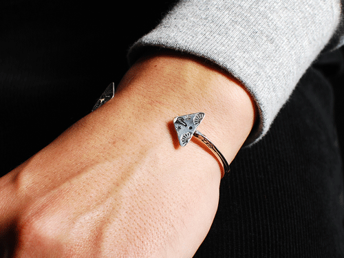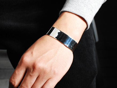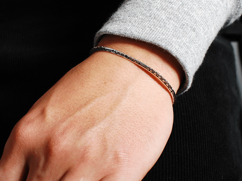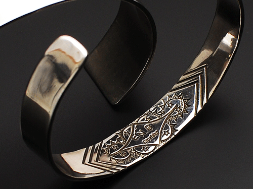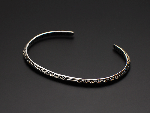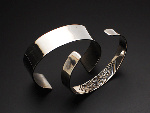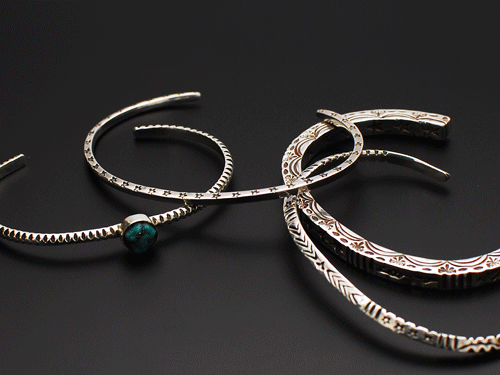 シンプルなバングルの裏面にはスタンプワークを(¥29000&13500)