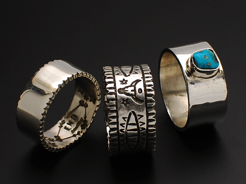 リングはシンプルなものから細かくスタンプを施したものまで。