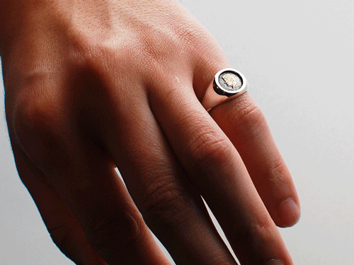 リングはシルバー925製で、ブラス(真鍮)製の10mmケネディコインがセットされています。(10000)