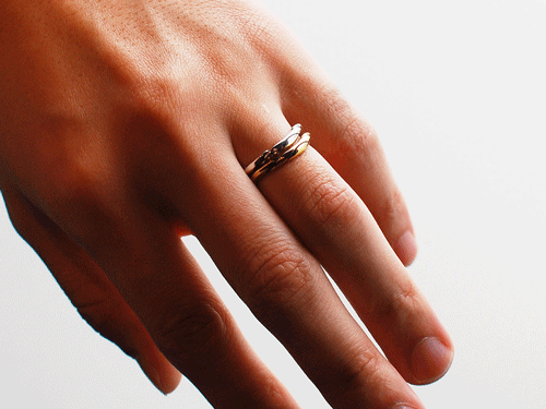 横から見ると無限大♾(Infinity)のサインに見えるリングは、2個1setなので、様々な表情を楽しむことが出来ます。(10000)