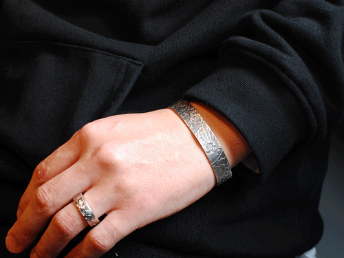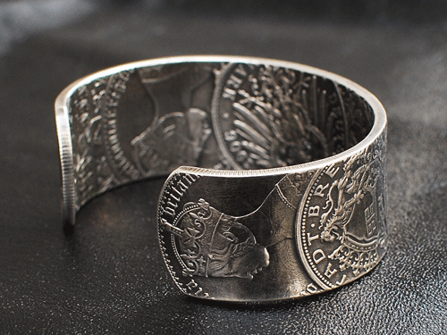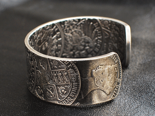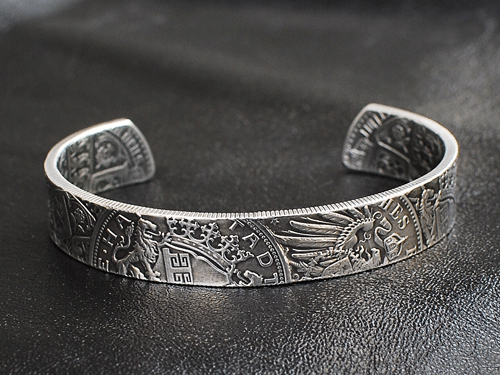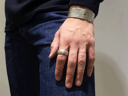 またバングルですが、コインが持つそれぞれの表情を一直線に繋ぎ合わせ形成されております!