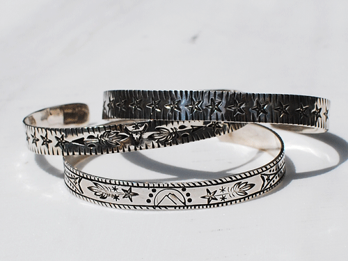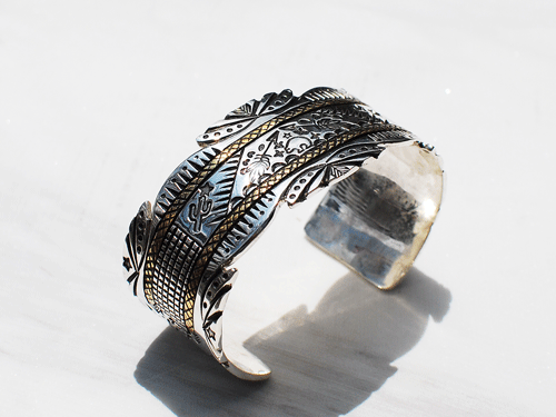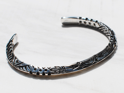 今回もEricka Nicolas Begay(エリッカニコラスビゲイ)よりバングルが届いておりますが、彼女の作品は何といってもその繊細なスタンプワークにあります。
