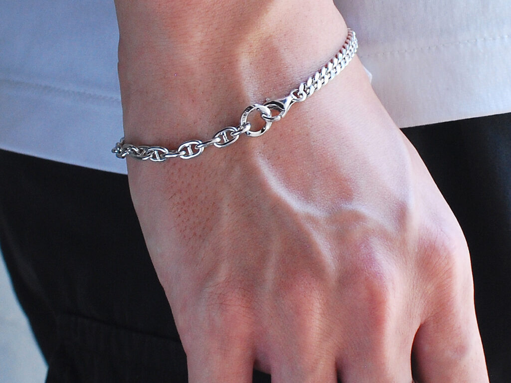 アンカーチェーンとカーブチェーンをミックスしたチェーンブレスレット。