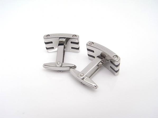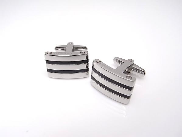 ステンレススティールにブラックのラインが入ったシャープな印象のカフス。さりげないお洒落が楽しめるアイテム。(縦:12mm/横:19mm/厚み:6mm)