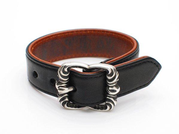 ◆重厚なタッチで描かれたバックルデザインのレザーブレスレットです。