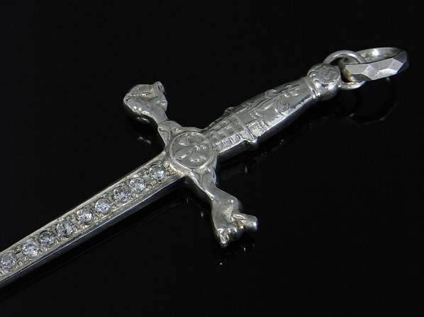 縦長のダガーペンダント。シャープなダガーなので長めのチェーンで胸元を演出したい。(縦:95mm /横:24mm)
