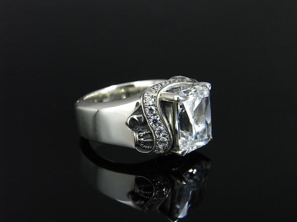 ◆クリアのキュービックジルコニアをメインに、両サイドにも同様の石をセッティングしています。