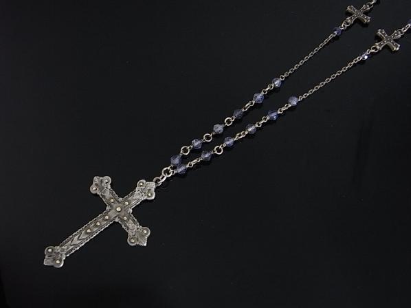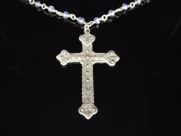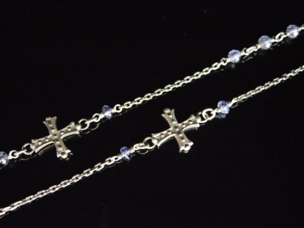 タンザナイトをチェーン部分にあしらったファッション性の高いクロスペンダント。