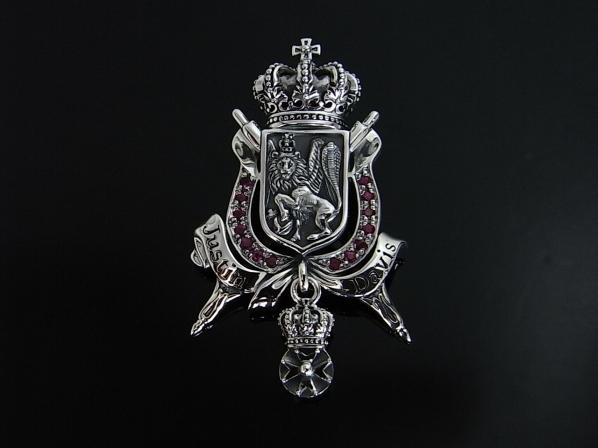 ◆シールド(盾)の周りのリボンには、贅沢にルビーがセッティングされています。