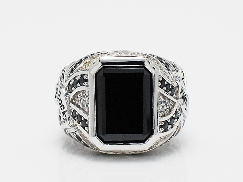 ◆スクエアにカットされた大ぶりのブラックジルコニアが際立つリングです。