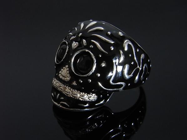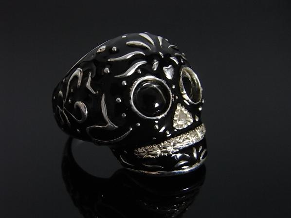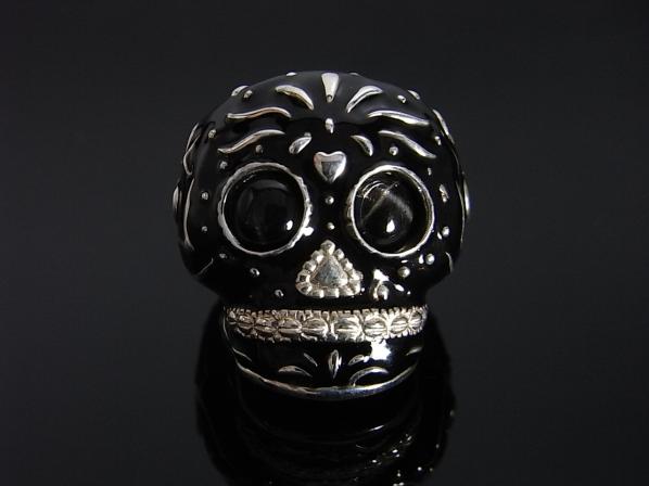 ◆シルバーのスカルをブラックエナメルでコーティング、眼にはブラックスター・オプサイトを施した仕上がり。