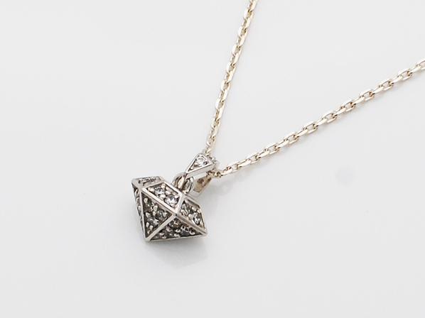 ◆立体的なダイヤモンドフォルムのデザインにキュービックジルコニアを敷き詰めたネックレスになります。