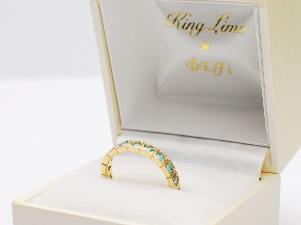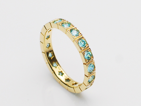 ◆ブルーのキュービックジルコニアを一周とりまいた、エタニティー(永遠)デザインの細見のリングになります。