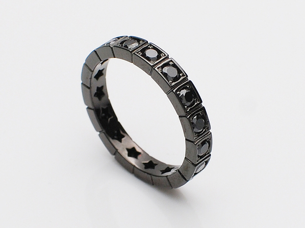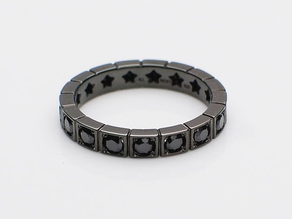 ◆ブラックのキュービックジルコニアを一周とりまいた、エタニティー(永遠)デザインの細見のリングになります。
