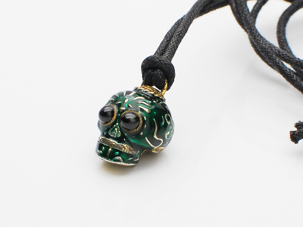 ◆スカルをグリーンエナメルでコーティング、眼にはブラックスター・オプサイトを施した仕上がり。