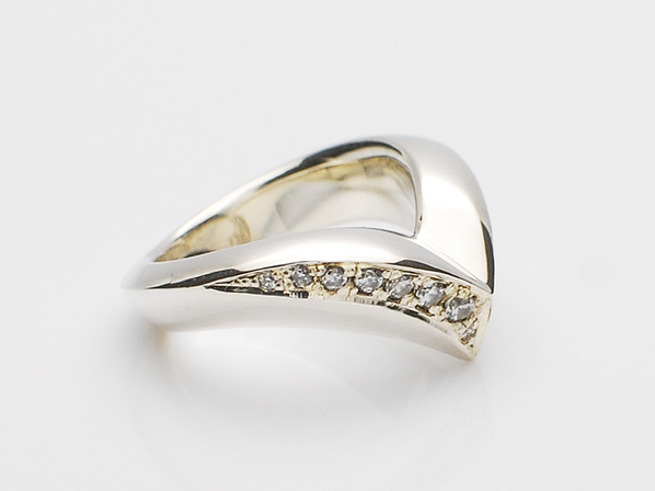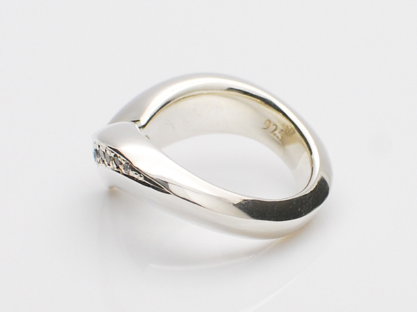 ◆V字部分にキュービックジルコニアを敷き詰め、その鋭角的なラインと曲線美で表現したフォルムは男女共お楽しみ頂けるアイテムです。