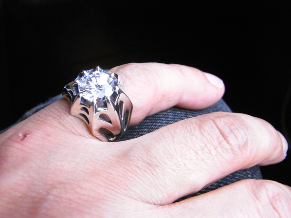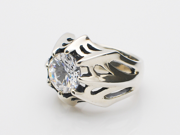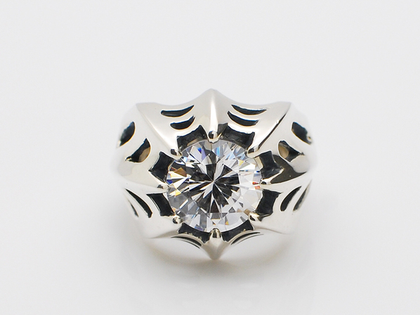 ◆中央には大ぶりのキュービックジルコニアを配し、繊細なタッチと大胆な石使いによって完成されたキングリモを代表する逸品となります。