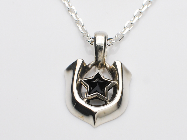 ◆くぼみの中に幸運を貯め込むと言われるホースシュー(馬蹄)をモチーフに、スターカットされたブラックキュービックジルコニアを配したペンダントヘッドです。