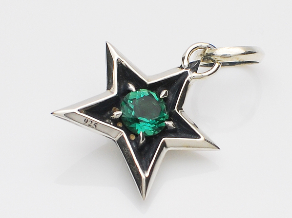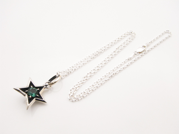 ◆エッジの効いたスターと裏面にはグリーンクオーツを配し、リバーシブルでお楽しみ頂けるスターペンダントになります。