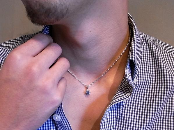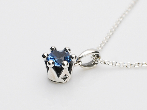 ◆クラウンの台座にシンセティックサファイアをセッティングしたネックレスです。