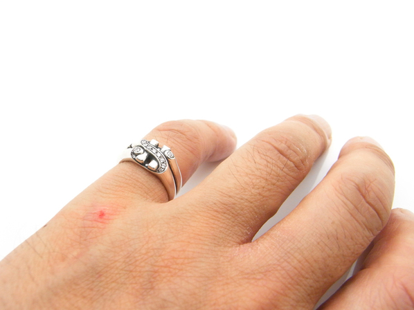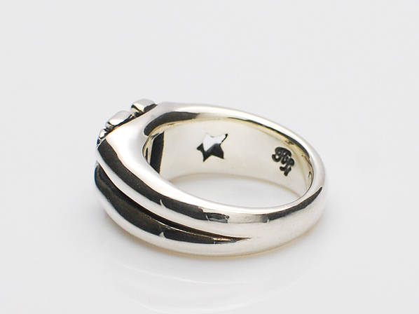 ◆中央にキュービックジルコニアを贅沢にセッティングし、サイドをスターが抜いています。