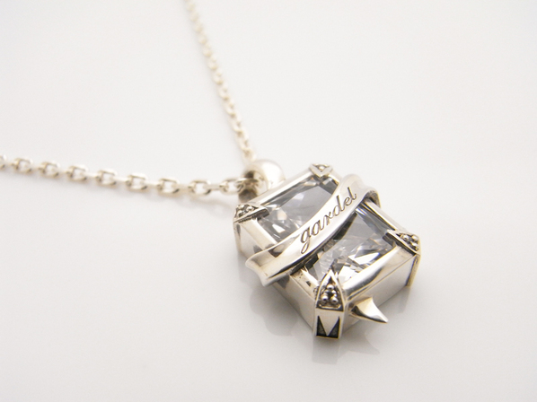 ◆大粒でクリアーのキュービックジルコニアをギフトBOXようにデザインし、ガーデルのロゴが入ったリボンで包んだプリンセスG(ギフト)ネックレスです。