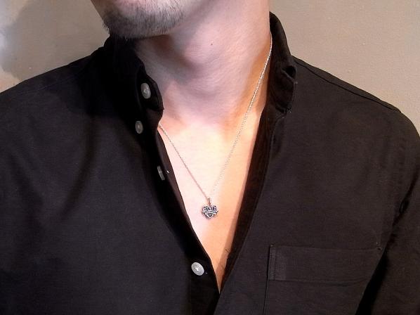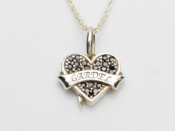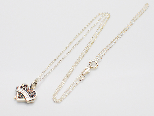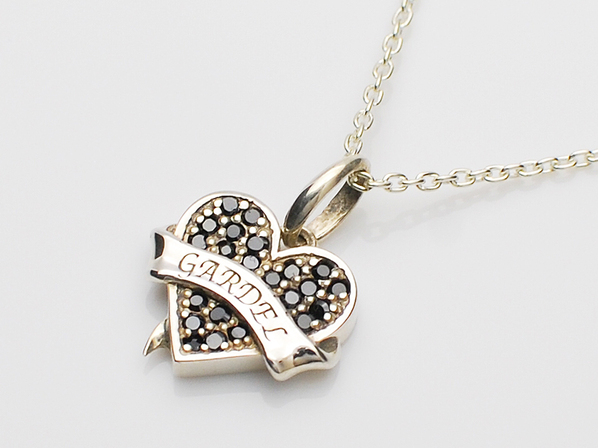 ◆ハートにTATOOで使われるリボンを巻きつけたネックレスで、ブラックキュービックジルコニアを敷きつめコントラストも鮮やかに仕上げています。