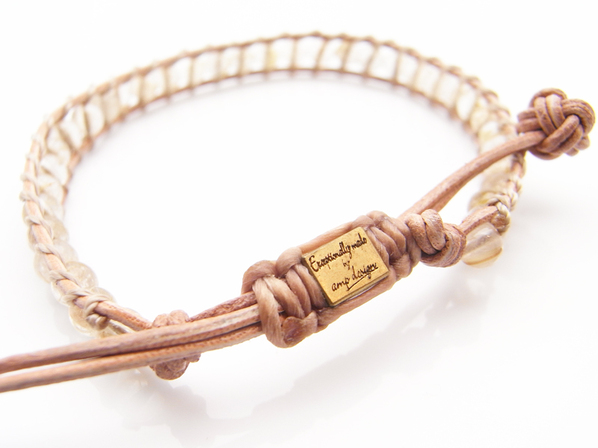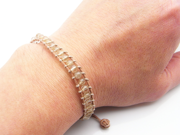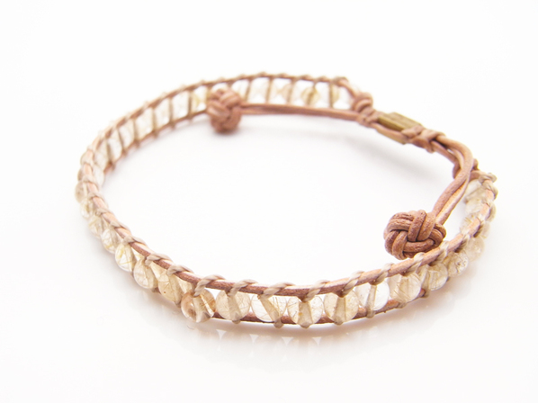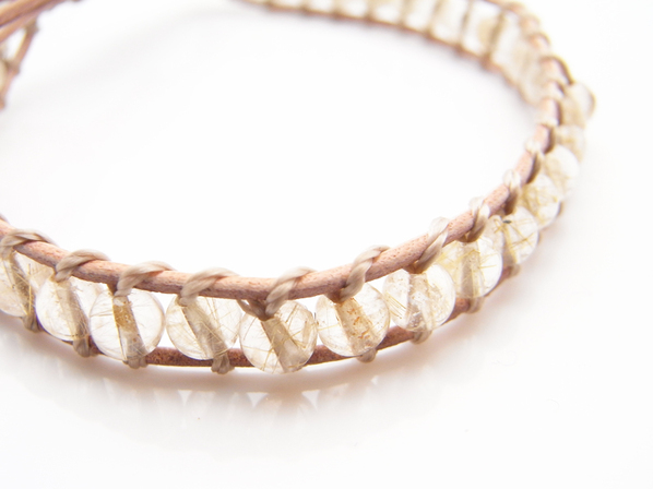 ◆針が入ったような水晶(ルチルクオーツ)を、ベージュのレザーで編み込んだとても珍しSINGLE TYPEのブレスレットです。